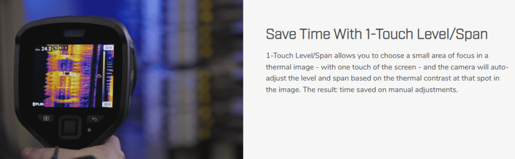 Featuring a 3.5-inch touchscreen, the FLIR E8 Pro allows you to add detailed annotations to images and save them to the cloud, making it simple to create reports.